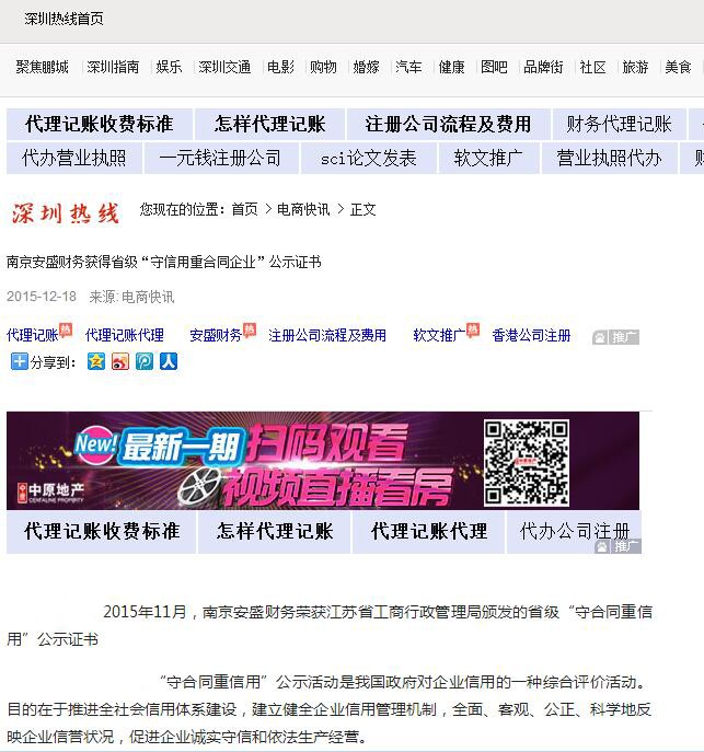 2015年11月,南京安盛財(cái)務(wù)榮獲江蘇省工商行政管理局頒發(fā)的省級(jí)“守合同重信用”公示證書