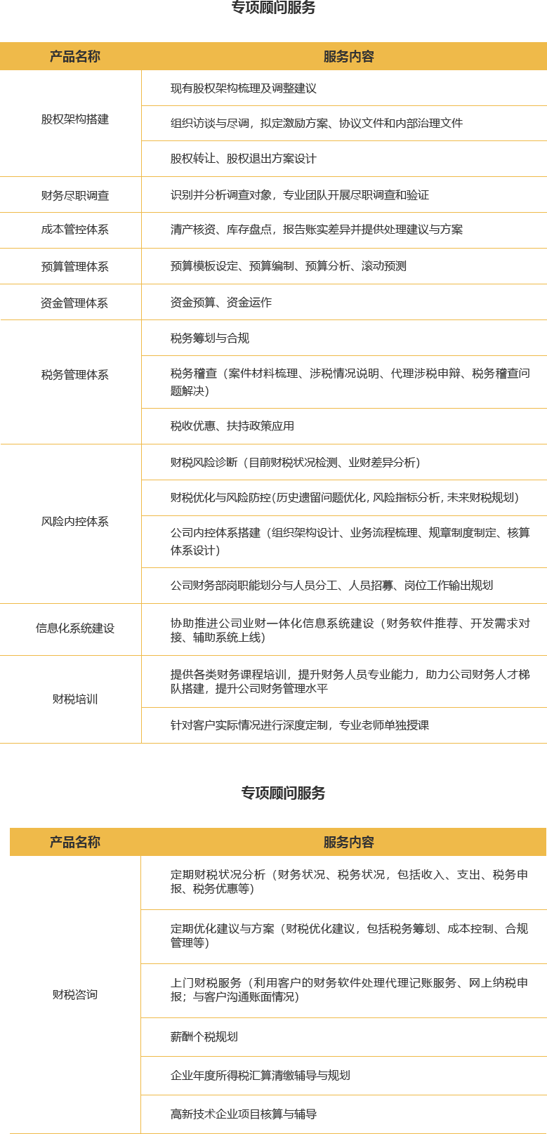 適用范圍:專項(xiàng)顧問服務(wù),財(cái)稅咨詢,業(yè)財(cái)融合